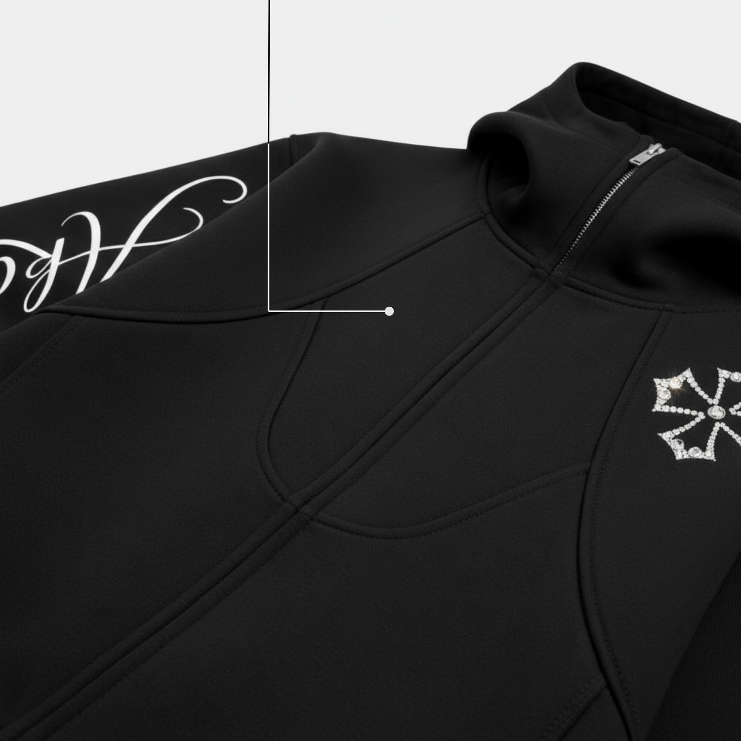 Nous recommandons un lavage à froid ou à 30 °C à l’envers, sans sèche-linge. Cela préserve la couleur, la texture et les détails (rhinestones, broderies, puff print).