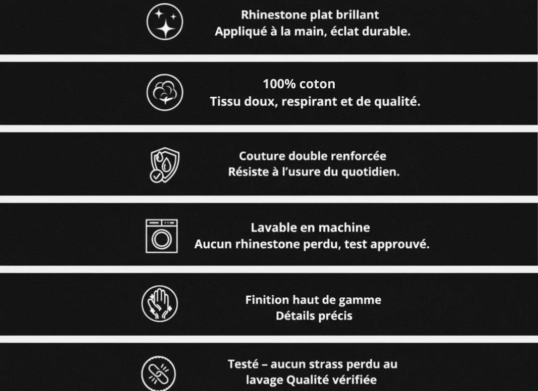 Les rhinestones et impressions tiennent-ils dans le temps ?